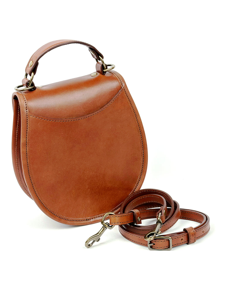 A modern interpretation of a classic saddle bag — crafted in small batches from USA bridle leather, solid brass hardware, and a spirit of sustainability.